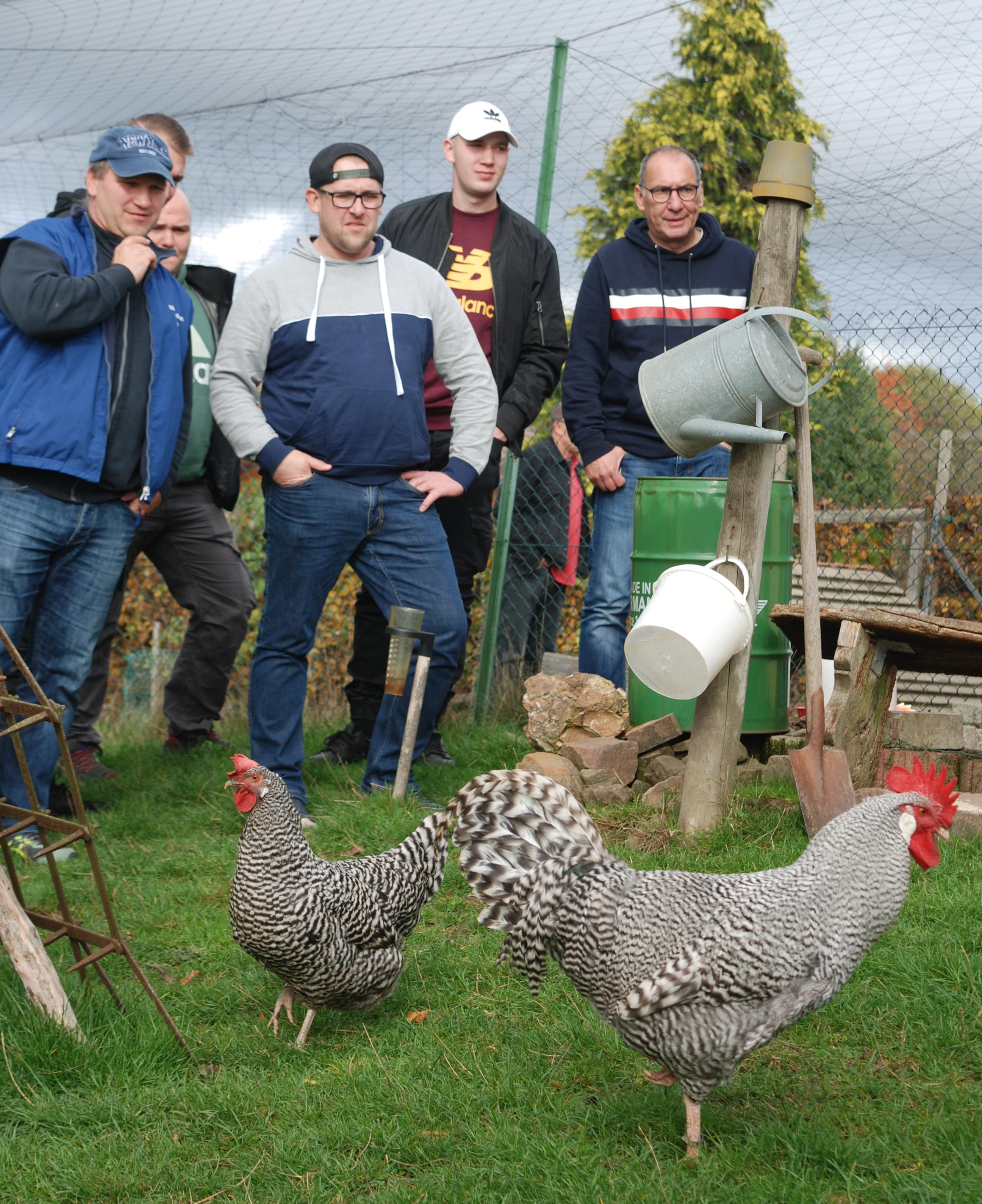 Vor der Schaueröffnung besichtigten die Sperberfreunde die Zuchtanlage des Frankenauer Rassegeflügelzuchtvereins mit elf kleinen Häuschen und fast 30 Gehegen. Am nahe gelegenen Stadtteich waren Pommerngänse, Lippegänse und verschiedene Entenrassen unterwegs. Mit Spannung wurden danach die Bewertungsergebnisse der 91 ausgestellten Tiere erwartet. Der neue Vereinsmeiter Holger Kohlepp ließ sich mit einer Getränkerunde feiern. Zuchtleiter Maik Helmbold erläuterte bei einer Tierbesprechung die Vorzüge und Wünsche der ausgestellten Tiere. Beim Züchterabend in der Kellerwaldhalle präsentierten sich die Sperber-Züchter wie eine große Familie und sorgten für gute Stimmung.
