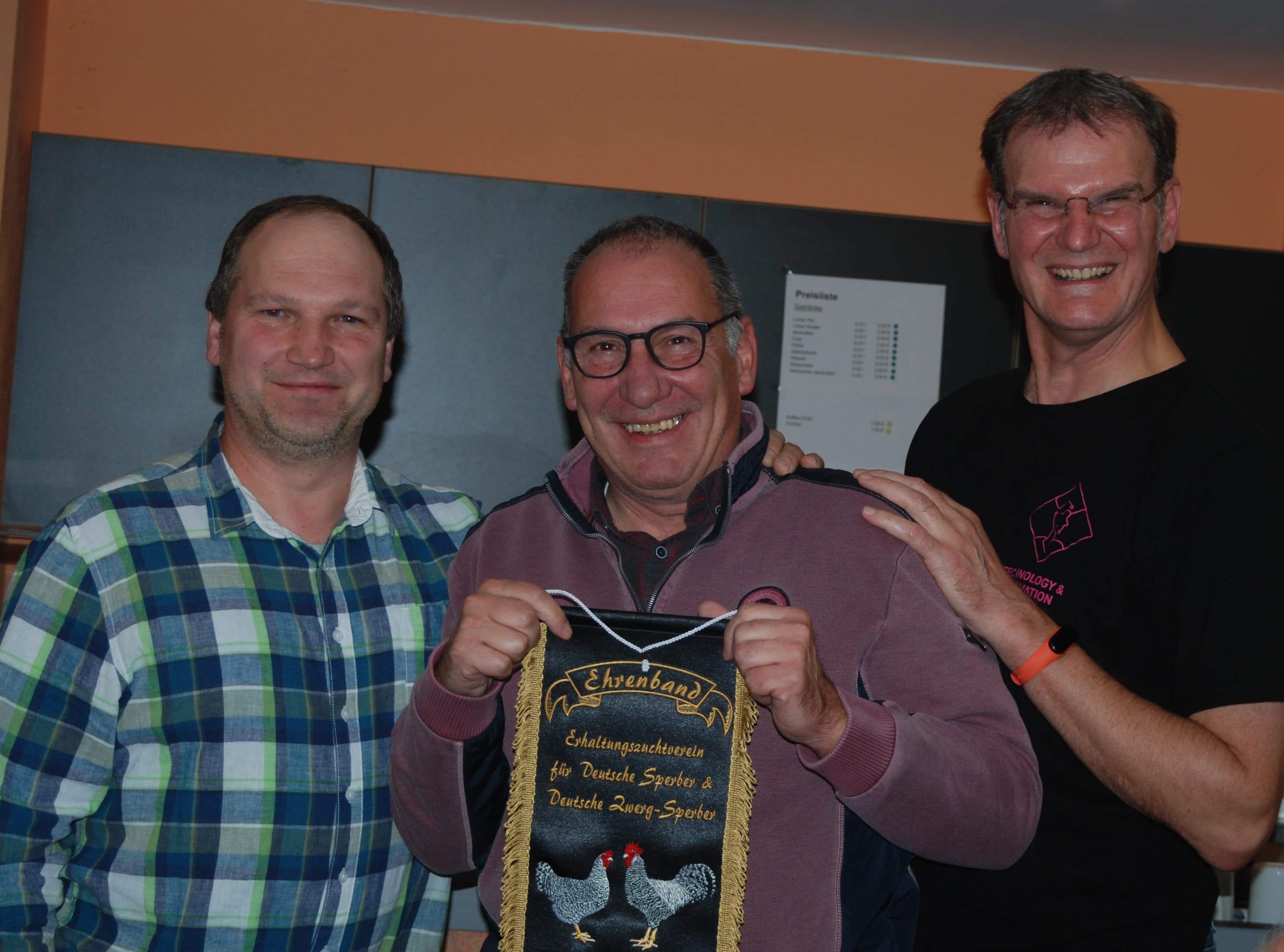 Bei der Siegerehrung am Abend verliehen Sascha Leuschner und Vizevorsitzender Christopher Korr drei Sondervereinsbänder an Holger Kohlepp für eine Henne Deutsche Zwerg-Sperber, an Maik Helmbold für eine Henne Deutsche Zwerg-Sperber und an Denni Helmich für eine Henne der Deutschen Sperber, alle mit der Höchstnote „vorzüglich“ bewertet. Ein Landesverbandspreis errang Meinhard Völker aus Frankenau.